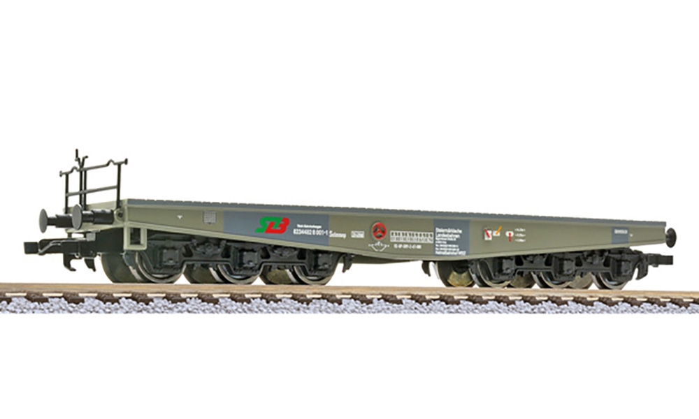 Schwerlast-Transportwagen, 6-achsig, Bauart Salmmnp der StLB (Steiermärkische Landesbahnen), Betriebs-Nr. 82 34 482 8 001-1, LüP 152 mm.